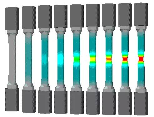 試驗(yàn)最終得到的拉伸曲線,實(shí)際上是載荷-伸長曲線,在這個曲線中有四個階段:彈性階段、屈服階段、強(qiáng)化階段、頸縮階段。