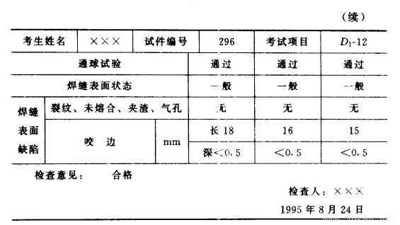 外觀檢查的結果見表6-15。焊縫兩側雖有咬邊,但深度均小于0.5mm,且咬邊總長度不超過焊縫長度的20%。