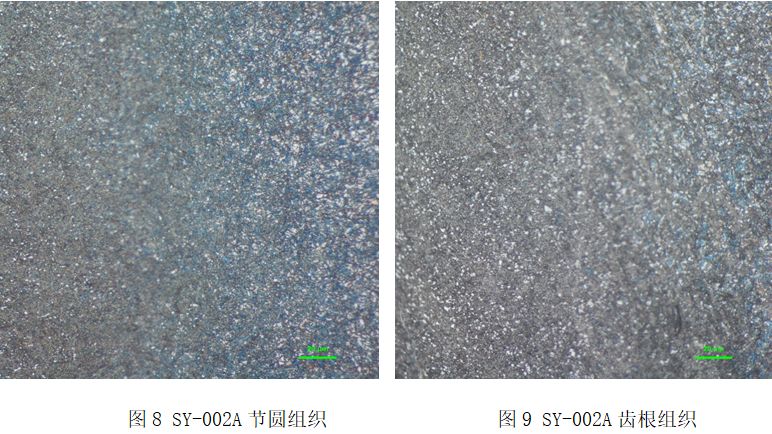 齒形樣表層組織檢測(cè)結(jié)果如表3所示。金相圖如圖4~圖11所示。