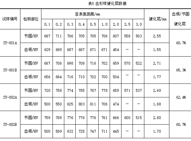 (2)鹽淬或油淬,齒形樣840℃淬火后節(jié)圓及齒根處硬化層均略高于860℃降840℃淬火后數(shù)據(jù)。