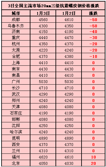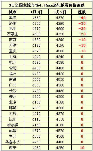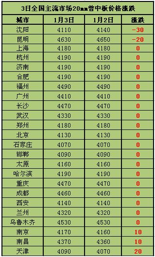 今日,國內鋼材市場價格基本處于平穩狀態,局部市場漲跌互現。中鋼網監測數據顯示,元旦節后,市場主要鋼種的報價逐漸趨穩,市場心態對后期市場略顯悲觀,預計近期鋼材價格或將窄幅運行為主。