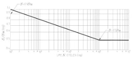 對很多金屬已經(jīng)進行了大量的疲勞試驗。從這些試驗中,已經(jīng)開發(fā)出拉伸強度和循環(huán)次數(shù)的曲線圖。鍛鋼的一個例子如圖1所示。 在這個對數(shù)記錄圖上的垂直坐標標示出了施加的應力與鋼的極限拉應力“SU”的比例,而橫坐標是應力循環(huán)至失效的次數(shù)。SN曲線的左側表明,在高循環(huán)載荷下的鋼件產(chǎn)生的應力占了拉伸強度的較大比例,在一定數(shù)量的循環(huán)之后就會失效。SN曲線的右側表明,如果循環(huán)應力保持在可定義的極限以下,則部件將具有無限的壽命。曲線還告訴我們,如果一個鋼件只有一個加載周期,其應力大于其拉伸強度,則該鋼件將失效(如當一個小螺栓如果擰緊時斷開)。如果施加的應力是拉伸強度的90%或更多,它也會在小于一千個周期內(nèi)失效。但如果應力保持在抗拉強度的一半以下,它就不會疲勞。