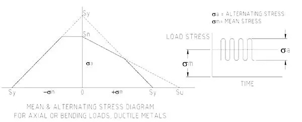 知道一部分將受到波動負載需要設計師設計的部分,為該條件。使用已知的極限拉伸應力和屈服應力(金屬首先開始永久變形的應力,約8090%的拉伸應力),設計者構造一個應力限制包絡,如圖2所示。然后設計該部件以使施加到其上的循環(huán)載荷為控制在包絡內(nèi)的應力。