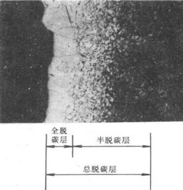 鋼在A(yíng)1~Acm區(qū)域內(nèi)加熱時(shí),強(qiáng)脫碳形成柱狀晶脫碳,在A(yíng)3以上加熱或A1以上加熱弱脫碳產(chǎn)生粒狀晶脫碳。