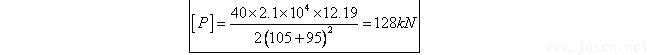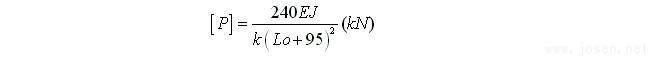 從形式上看GBJ113-87附錄三的支承桿能力計算公式,似以歐拉公式為基礎,即近似的看作支承桿上下兩端為固結(即μ=0.5),上端為千斤頂的下卡頭,下端在混凝土表面以下95cm處(若模板長120cm則基本上是模板下口附近)。以上述數據代入歐拉公式則有: