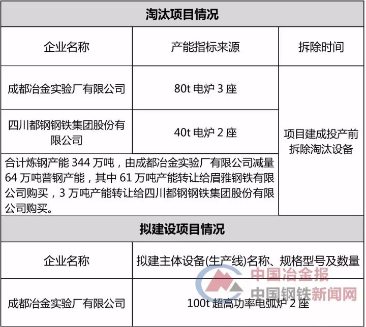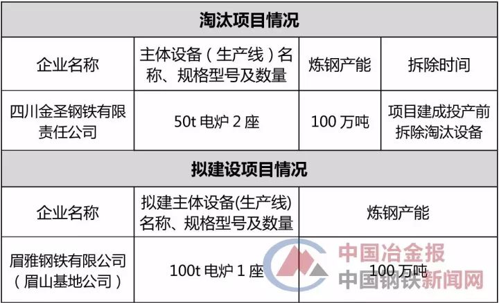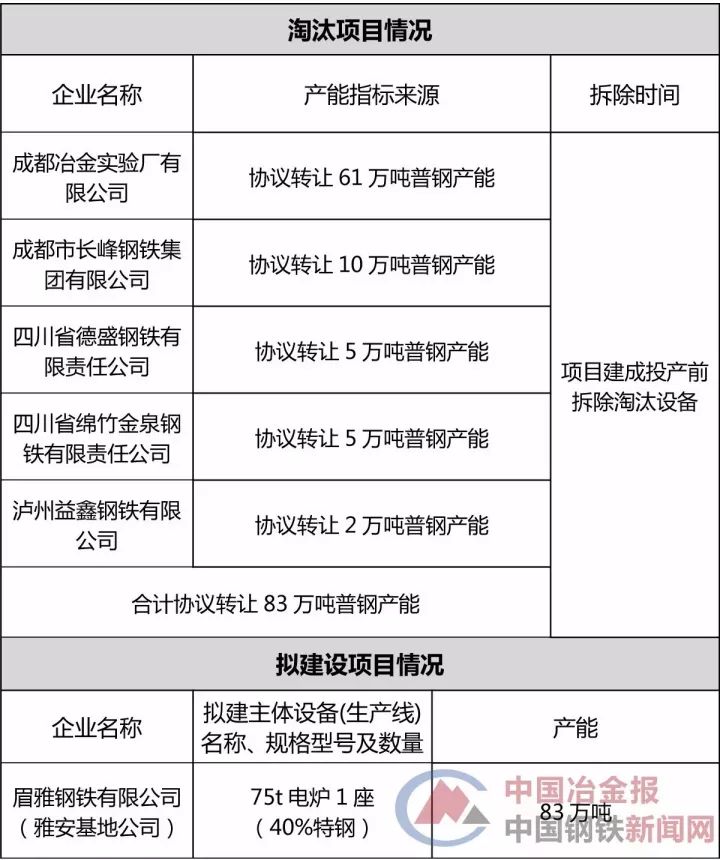 這兩家企業(yè)分別通過減量5萬噸產(chǎn)能,置換重組為四川圣德鋼鐵有限公司(暫定名),減量的10萬噸產(chǎn)能轉(zhuǎn)讓給眉雅鋼鐵有限公司(雅安基地公司),其余產(chǎn)能全部用于此次置換。
