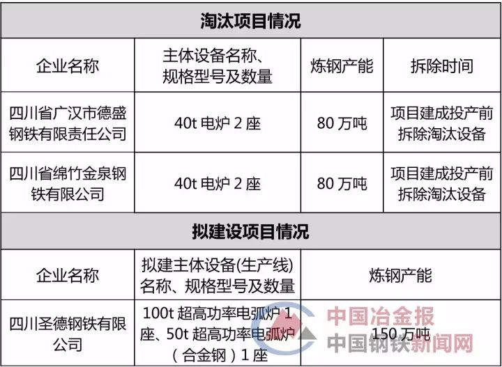 近日,四川省瀘州市經(jīng)信委、德陽市經(jīng)信委等政府網(wǎng)站相繼公示了四川省10家鋼企產(chǎn)能置換的具體方案。經(jīng)比對,這10家鋼企的置換方案,與今年9月份四川省經(jīng)信委網(wǎng)站公示的產(chǎn)能置換方案(相關(guān)報道:新建20座電爐,四川千萬噸級鋼鐵產(chǎn)能置換項目公示)有所不同。