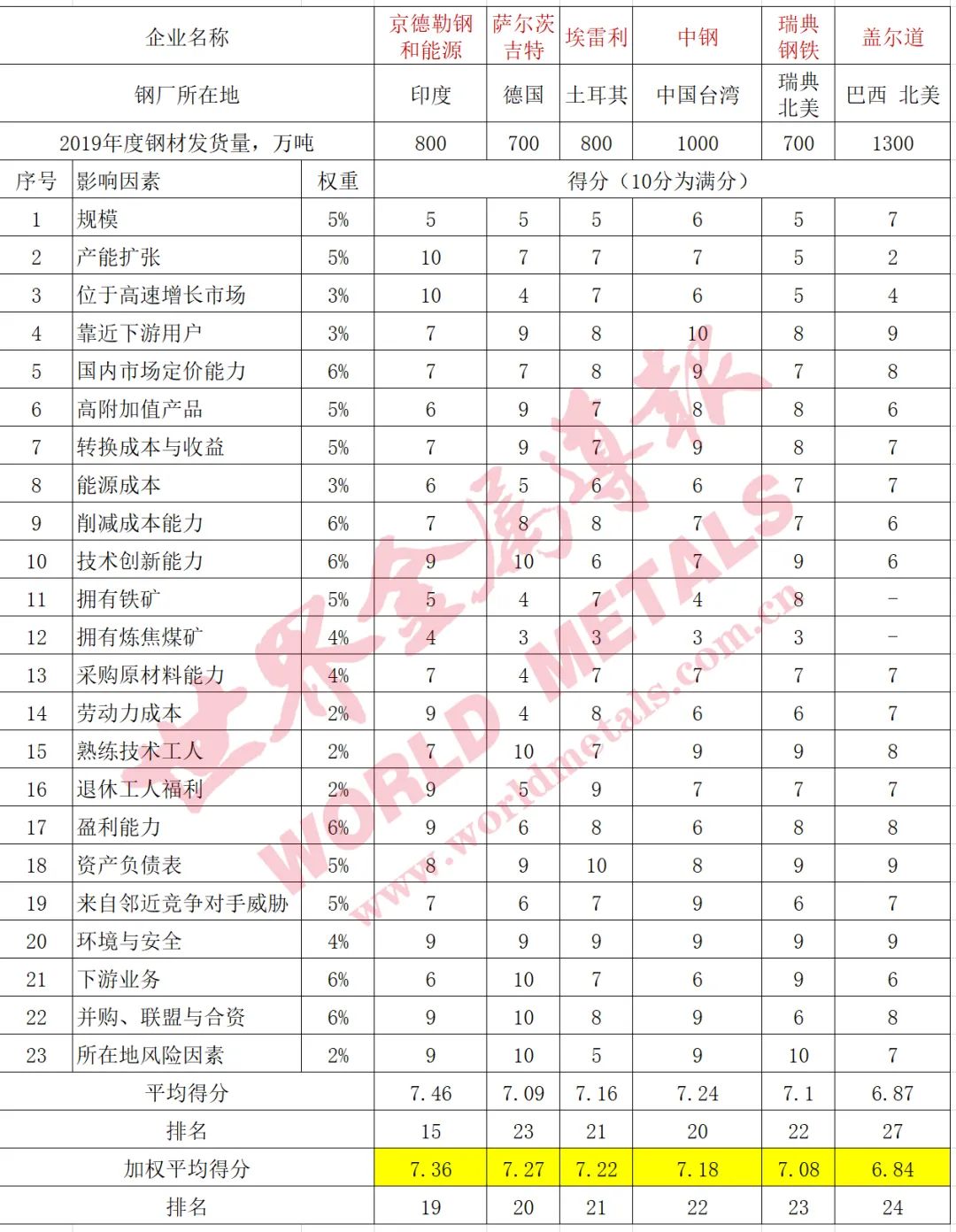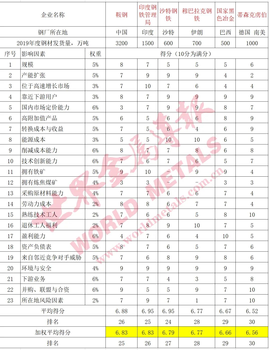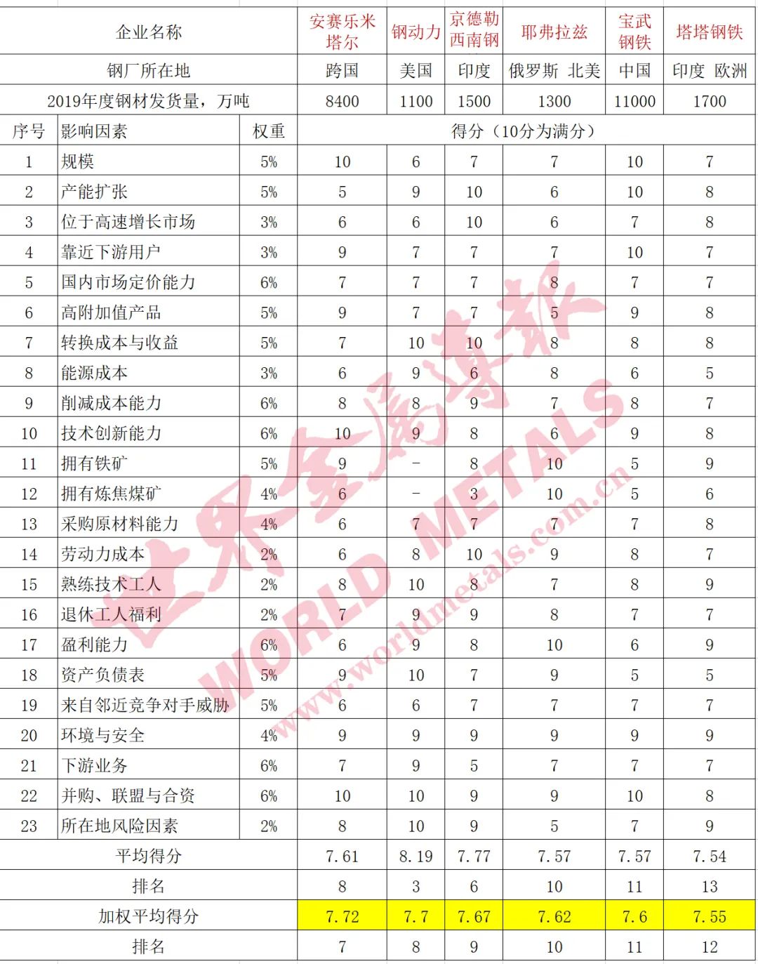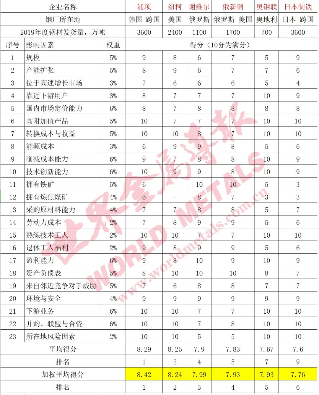 2020年世界級鋼鐵企業競爭力排名發布:浦項再獲全球最具競爭力鋼企桂冠,寶武排名繼續上升
