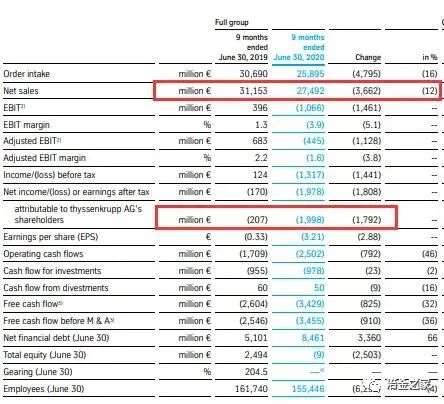 今年3月25日,蒂森克虜伯宣布,該公司已經與德國金屬產業協會(IG Metall)達成協議,作為本次協議的一部分,蒂森克虜伯將在2026年之前在其鋼鐵部門裁員3000人。該公司表示,將以對社會負責的方式進行裁員,在2026年3月31日之前,該公司不會進行強制性裁員。根據裁員方案,第一步,是在未來3年中裁員最多2000人;第二步,在2026年之前,該公司還將繼續裁員大約1000人。 蒂森克虜伯表示,由于疫情的爆發,該公司將對其鋼鐵業務的產量進行調整。公司執行董事Oliver Burkhard表示:“在未來幾周中,我們將不得不在多個生產地點縮短工作時間。這將會對于生產相關的領域產生影響,同時也會對行政部門造成影響。我們正在對所有措施進行仔細的研究,從而確定哪些措施能夠起效。即使我們沒有生產任務可做,我們也會盡力讓所有人都能保住工作,這樣才能在危機之后重回正軌。” 8月13日晚間,蒂森克虜伯公布了2019/2020財政年前三季度財報。 財報顯示,蒂森克虜伯僅第三季度凈利潤虧損就達到6.79億歐元(約合人民幣56億元),前三季度(2019年10月1日——2020年6月30日) 凈虧損近20億歐元(約合人民幣164億元),較去年同期虧損擴大近10倍。該公司前三季度營收275億歐元,較去年同期下降12%。換句話說,公司前三季度的營收只有去年同期的70%左右。