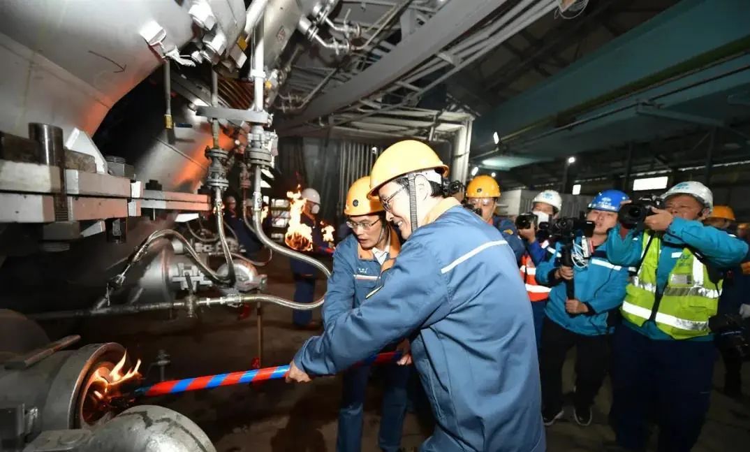 鄒繼新下達“點火”指令,高爐風口依次點火,寶鋼二號高爐大修改造工程圓滿成功。