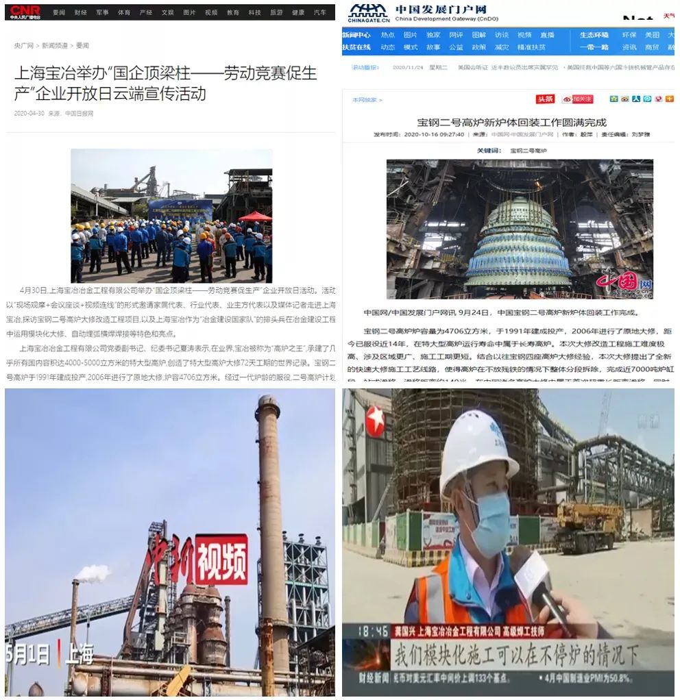 寶鋼四號高爐是容積4350立方米的特大型高爐,2014年11月,上海寶冶成功運用自主研發的短期化大修技術,實現了72天完成特大型高爐大修的紀錄,躋身于世界高爐大修施工前列。大修過程中,上海寶冶秉承三號高爐不放殘鐵的工藝,完成了重達6140噸的舊爐缸頂升、滑移技術,實施了高爐本體基礎在線精準開設隧道技術、爐殼在線精細化加工技術、自主研發1300°C耐熱混凝土的新工藝與技術,優質高效提前完成施工任務。