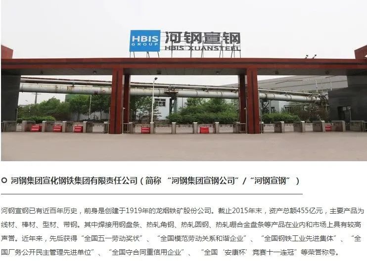 河鋼集團(tuán)組建于2008年6月,旗下鋼鐵子公司大多有著數(shù)十年乃至上百年歷史。河鋼集團(tuán)是由我國(guó)兩大鋼鐵集團(tuán)--唐鋼集團(tuán)、邯鋼集團(tuán)強(qiáng)強(qiáng)聯(lián)合組建而成的國(guó)內(nèi)最大、全球第二的特大型鋼鐵集團(tuán),總資產(chǎn)2638億元,年產(chǎn)鋼4024萬(wàn)噸,截至2019年,河鋼在全球擁有員工近12.7萬(wàn)人,其中海外員工1.3萬(wàn)人,實(shí)現(xiàn)年?duì)I業(yè)收入3547億元,總資產(chǎn)達(dá)4621億元。連續(xù)12年位列世界企業(yè)500強(qiáng),2020年居第218位, 在2020年“中國(guó)企業(yè)500強(qiáng)”、“中國(guó)制造業(yè)企業(yè)500強(qiáng)”、“中國(guó)跨國(guó)公司100大”排行榜中分別位列第59位、第18位和第35位。擁有唐鋼、邯鋼、宣鋼、承鋼、舞鋼、礦業(yè)、石鋼、國(guó)貿(mào)、財(cái)達(dá)、衡板、京唐、宣工、燕山大酒店等13個(gè)控股或參股子公司,銷售總公司、采購(gòu)總公司兩個(gè)分公司和鋼鐵技術(shù)研究總院、戰(zhàn)略研究院,集團(tuán)總部坐落在河北省省會(huì)石家莊。