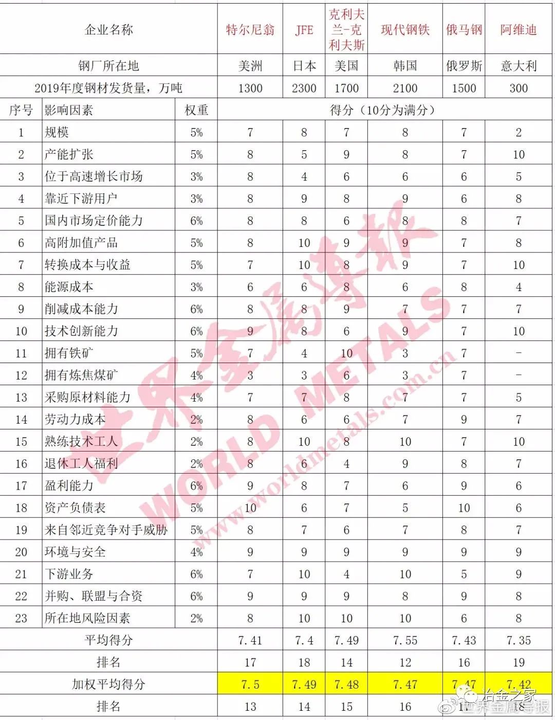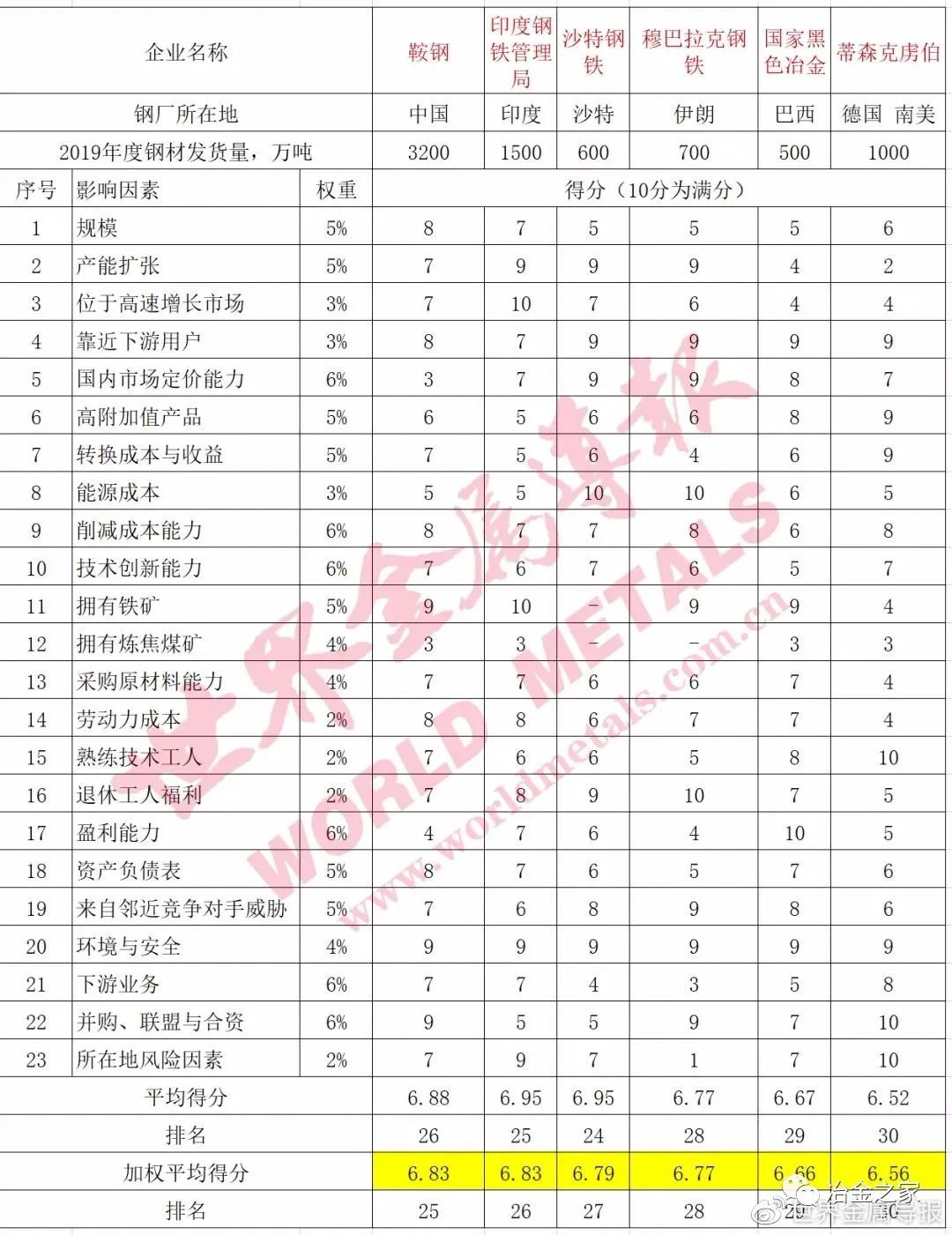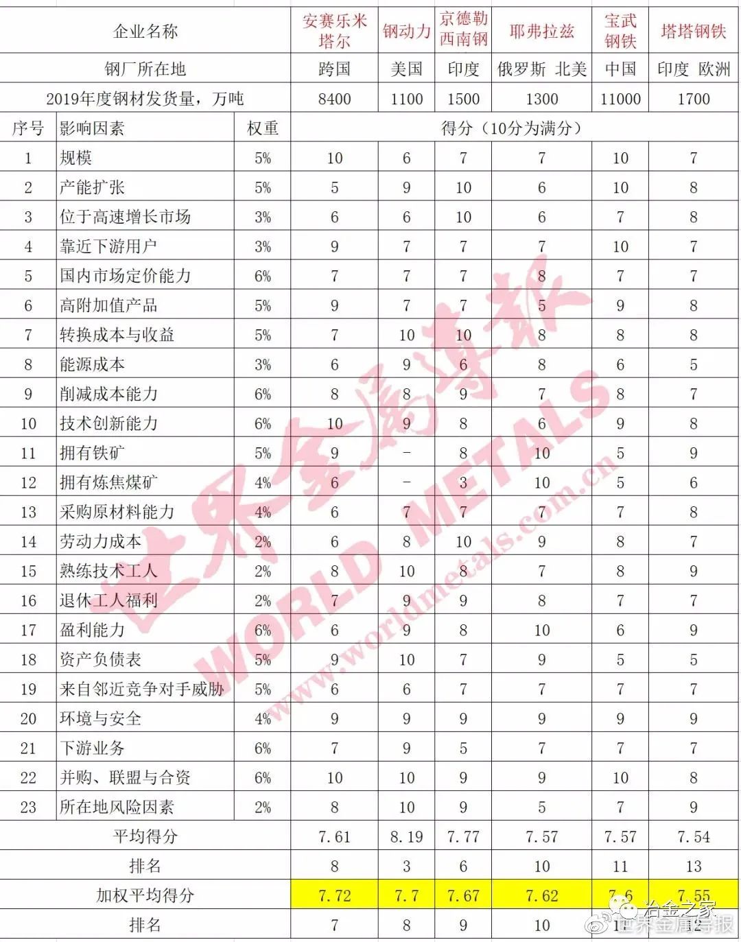 世界級鋼鐵企業(yè)競爭力排名