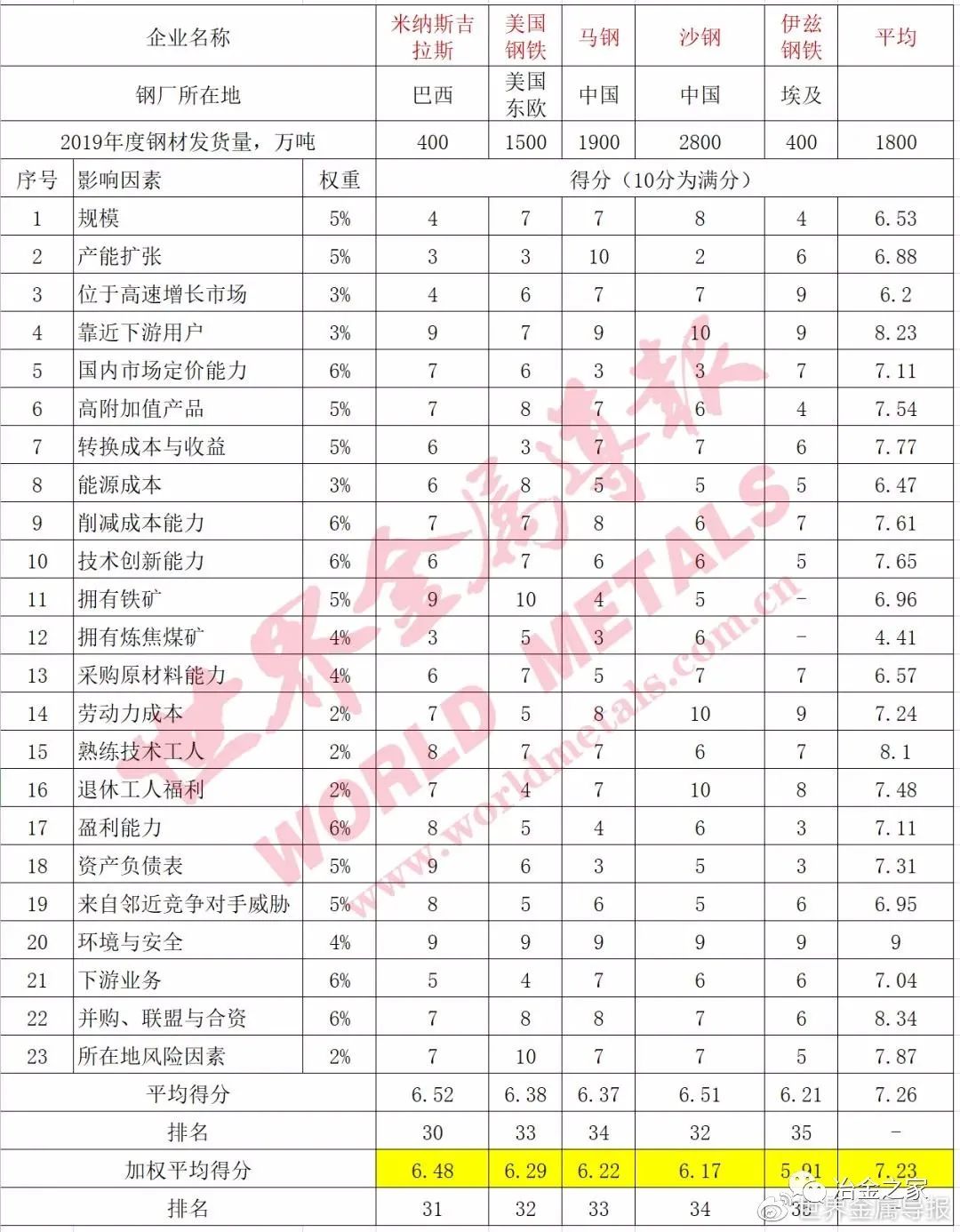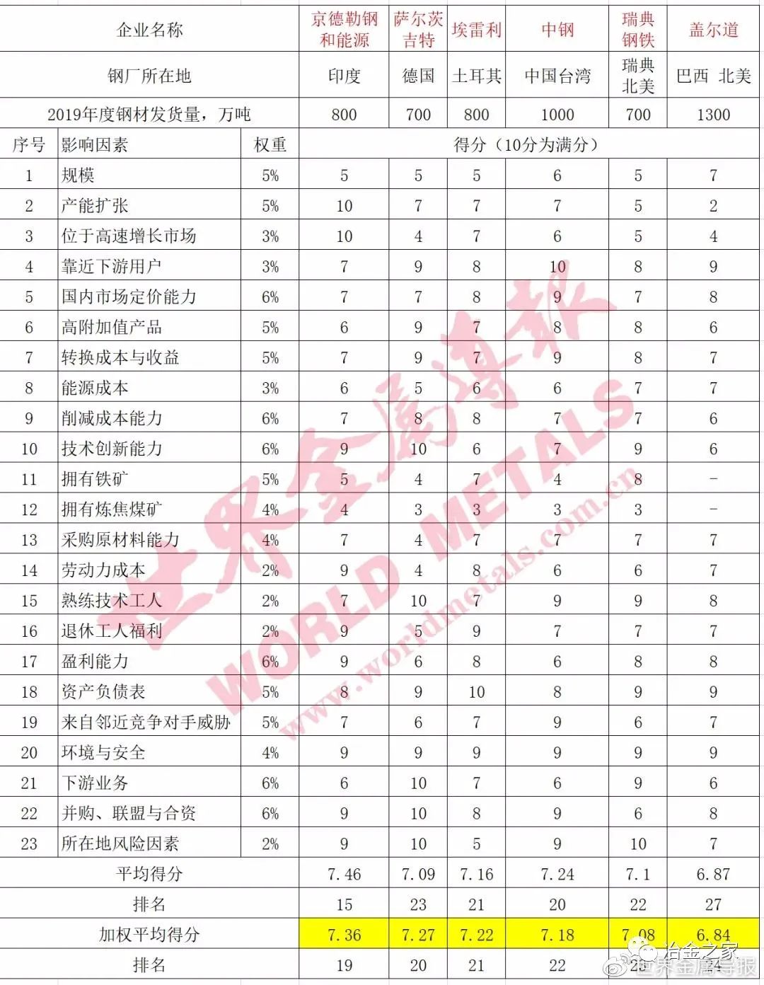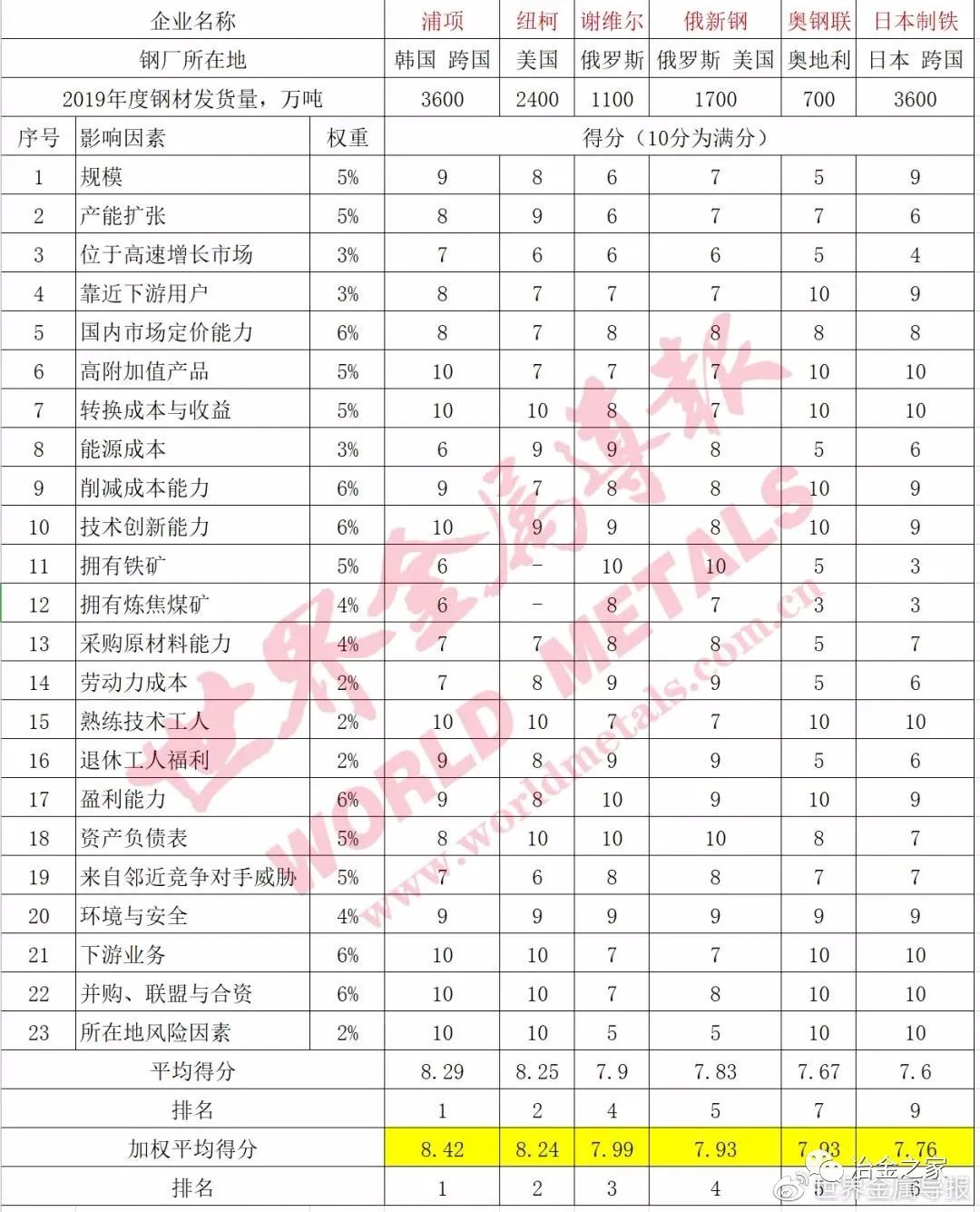 世界級鋼鐵企業(yè)競爭力排名