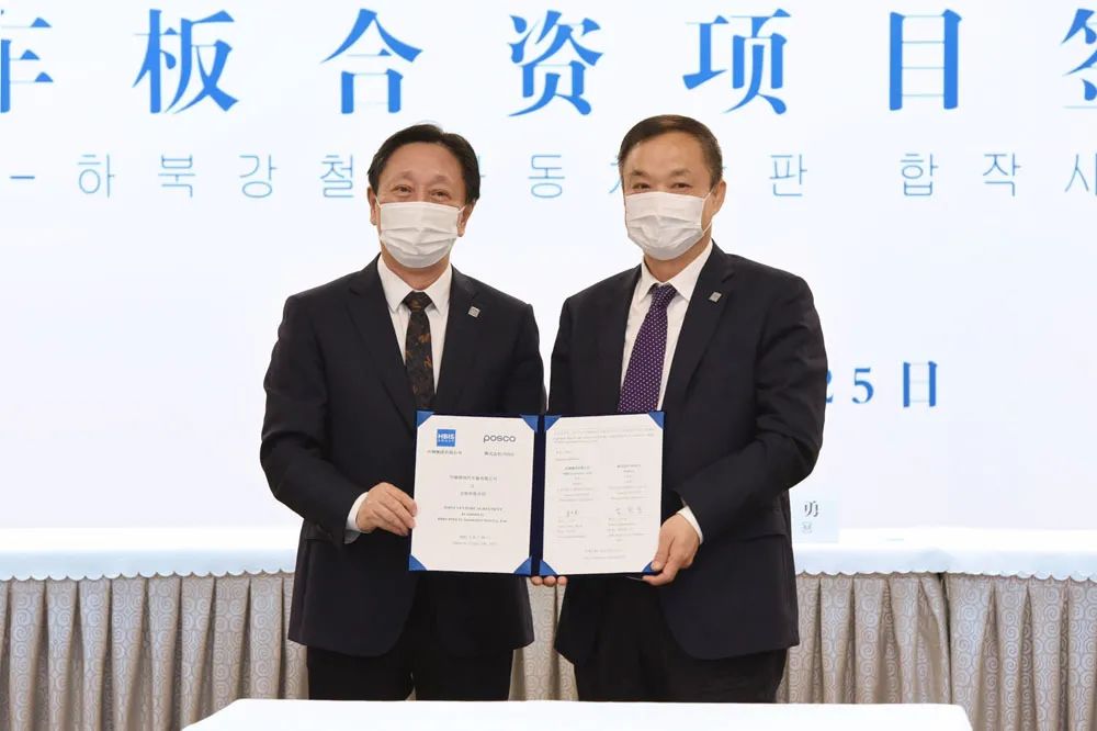 2021年6月25日,河鋼集團與韓國株式會社POSCO以視頻會議形式舉行河鋼POSCO汽車板合資項目簽約儀式, 正式落地實施年產135萬噸的高端汽車面板項目,將雙方全面合作關系推向新的高度。