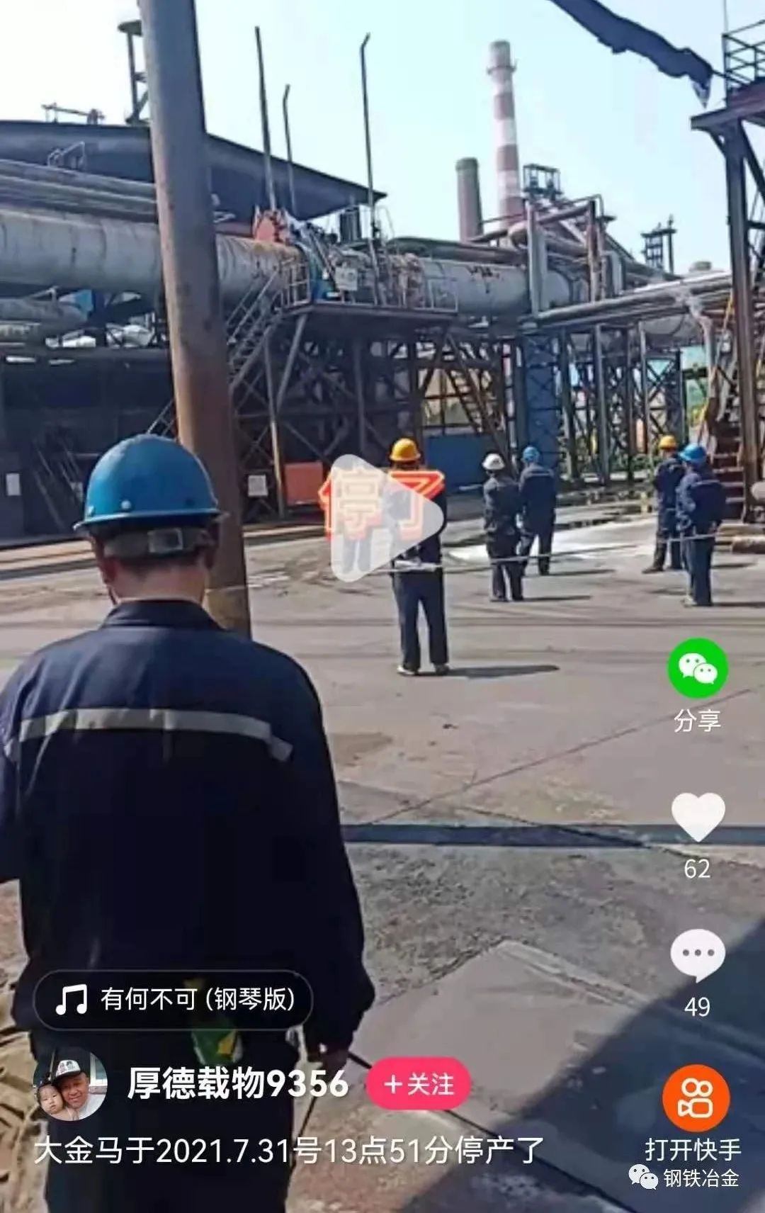 唐山金馬鋼鐵2021.7.31號(hào)下午13點(diǎn)51分停產(chǎn)了!