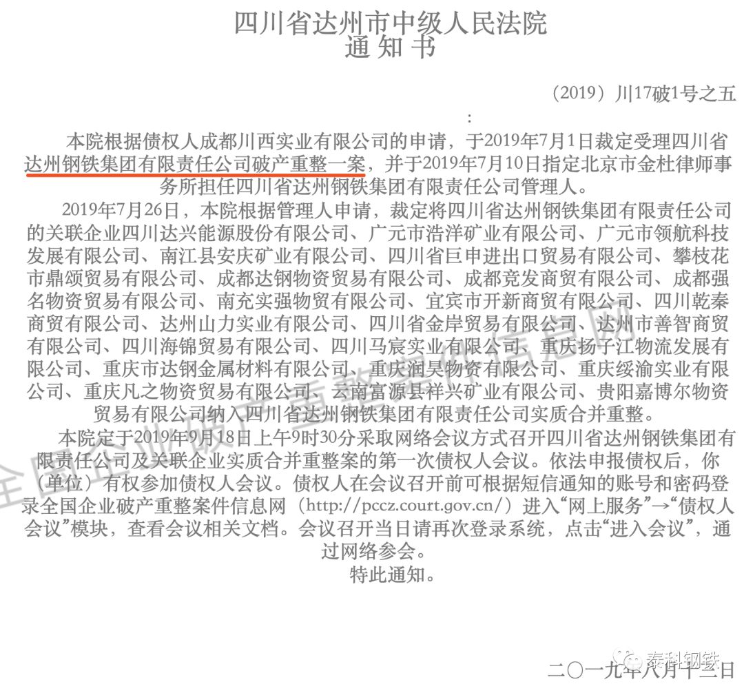重磅!達鋼破產!河北豐達破產!新疆金特破產!西南不銹破產!唐山玉田建邦實業、揚州廣利鋼管、銅山利國鋼鐵等破產!