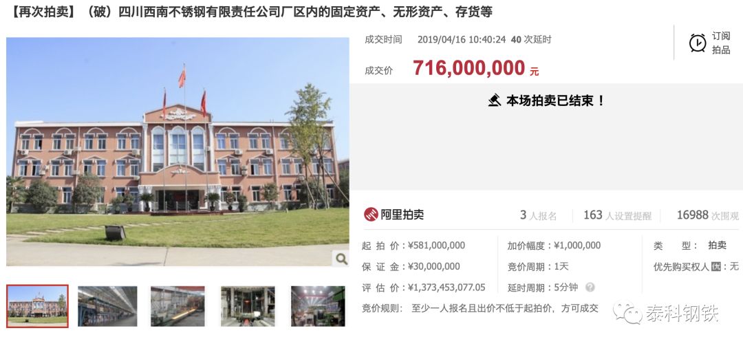 3、西南不銹破產資產拍賣,成都恒瑞興宇實業有限公司以7.16億元競得