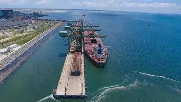 圖中的寶鋼千萬噸級鋼鐵基地于2013年5月開始動工,經(jīng)過2萬多名建設(shè)者860多天的努力,2015年9月26日,一號高爐點火,標(biāo)志著湛江37年的鋼鐵夢正式邁入投產(chǎn)嶄新階段。