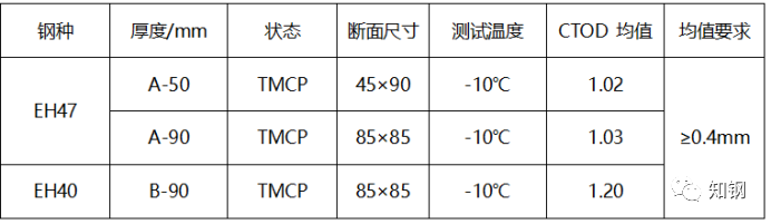 表2寶鋼研制的EH47/EH40級TMCP船板的機(jī)械性能