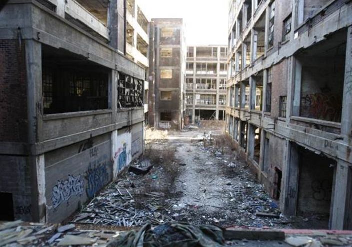 美國底特律最大的帕卡德(packard)汽車工廠,如今已成廢墟