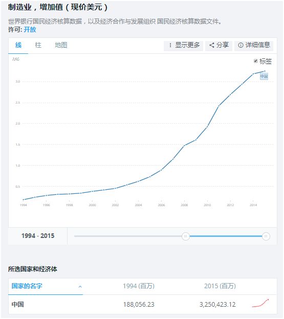 所以,就2015年的制造業增加值而言,中國是100%的話,美國+日本+德國是115%。經過2016年和2017年的發展,現在中國制造業增加值可以說已經是美日德三國之和了。