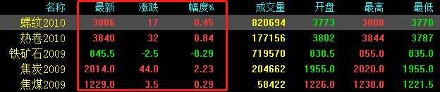 今日期貨高位震蕩,小幅收漲,期螺漲17收?qǐng)?bào)3806,期卷漲32收?qǐng)?bào)3840,鐵礦石跌2.5收?qǐng)?bào)845.5,焦炭漲44收?qǐng)?bào)2014,焦煤漲3.5收?qǐng)?bào)1229。