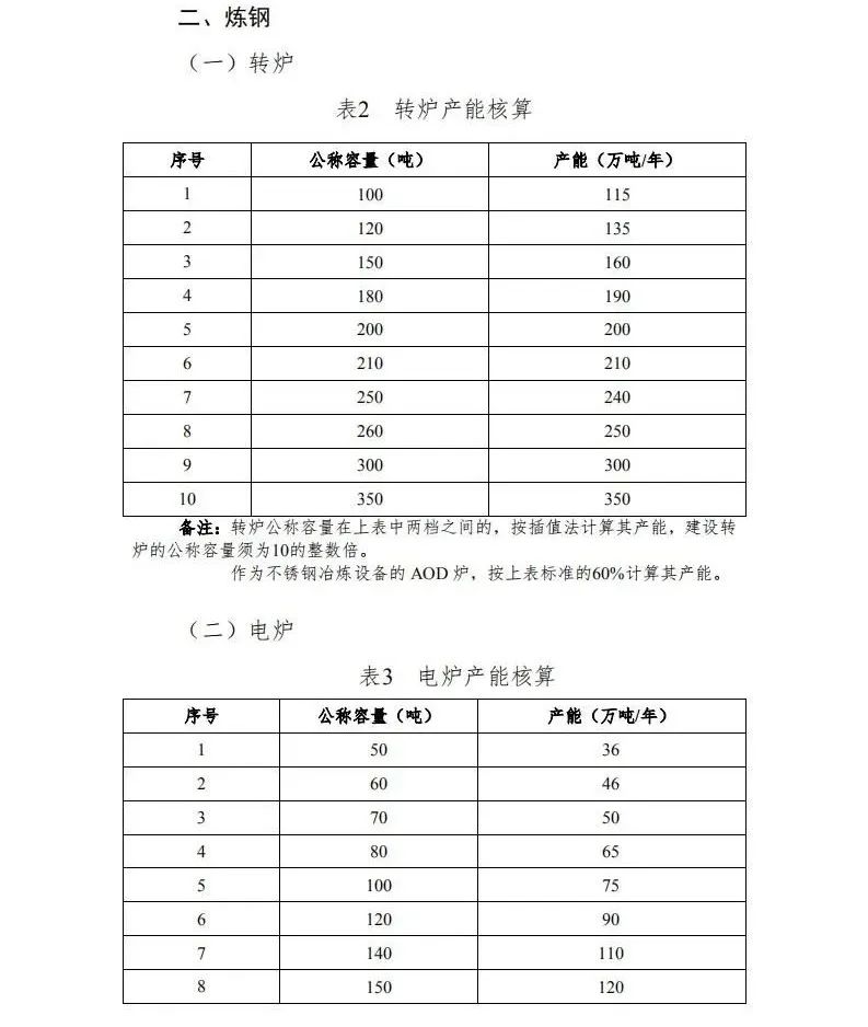 最新的《2020年鋼鐵行業產能置換實施辦法》(征求意見稿)發布,新的產能置換實施方案即將出臺,值得注意的是,從征求意見稿建設產能核算表附件來看,1200m3以下的高爐、100t以下轉爐、50t以下電爐都刪除了,就是說新的產能置換政策或將不允許新建1200m3以下的高爐、100t以下轉爐以及50t以下電爐,而且現有的這些設備肯定也將逐步退出!