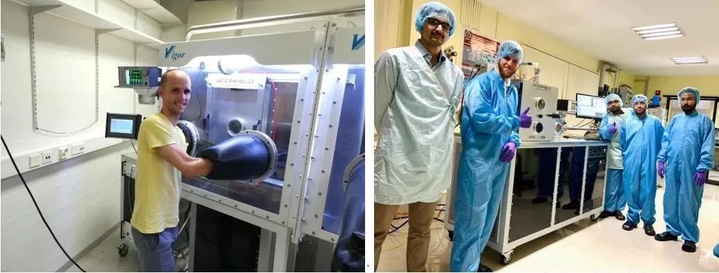 全球動(dòng)態(tài):近期安裝并交付使用的MinLab090型手套箱集成式金屬、有機(jī)物熱蒸發(fā)薄膜生長(zhǎng)系統(tǒng)(左)。近期安裝并交付使用的大尺寸樣品磁控濺射系統(tǒng)(右)。