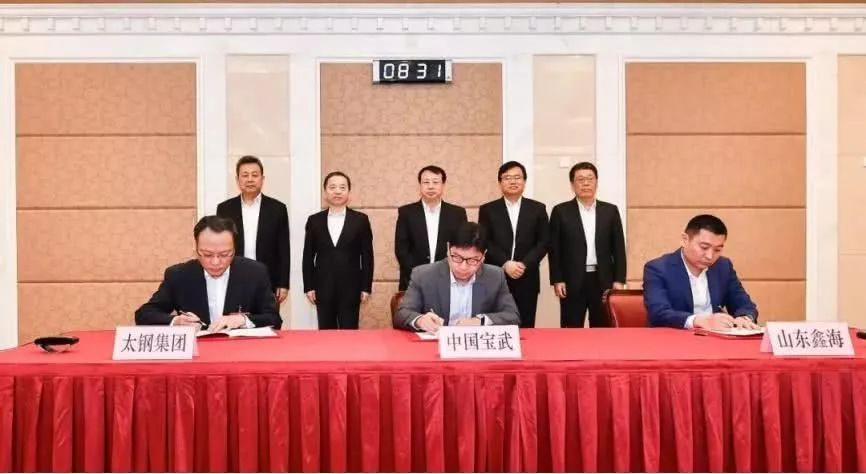 11月3日,寶武鋼鐵集團、太原鋼鐵集團、山東鑫海科技股份有限公司在濟南簽署戰略合作框架協議。山東省委副書記、山東省長龔正,寶武鋼鐵集團黨委書記、董事長陳德榮,太原鋼鐵集團黨委書記、董事長高祥明出席簽署儀式。根據協議,寶武鋼鐵集團、太原鋼鐵集團、山東鑫海將充分發揮各自優勢,推進三方在不銹鋼原料及制造等領域的合作,實現優勢互補、合作共贏。
