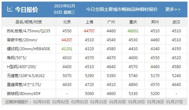 2月3日、中板24個市場中4個市場下跌10-30,1個市場上漲60,14-20mm普中板平均價格4498元/噸,較上個交易日價格相同。