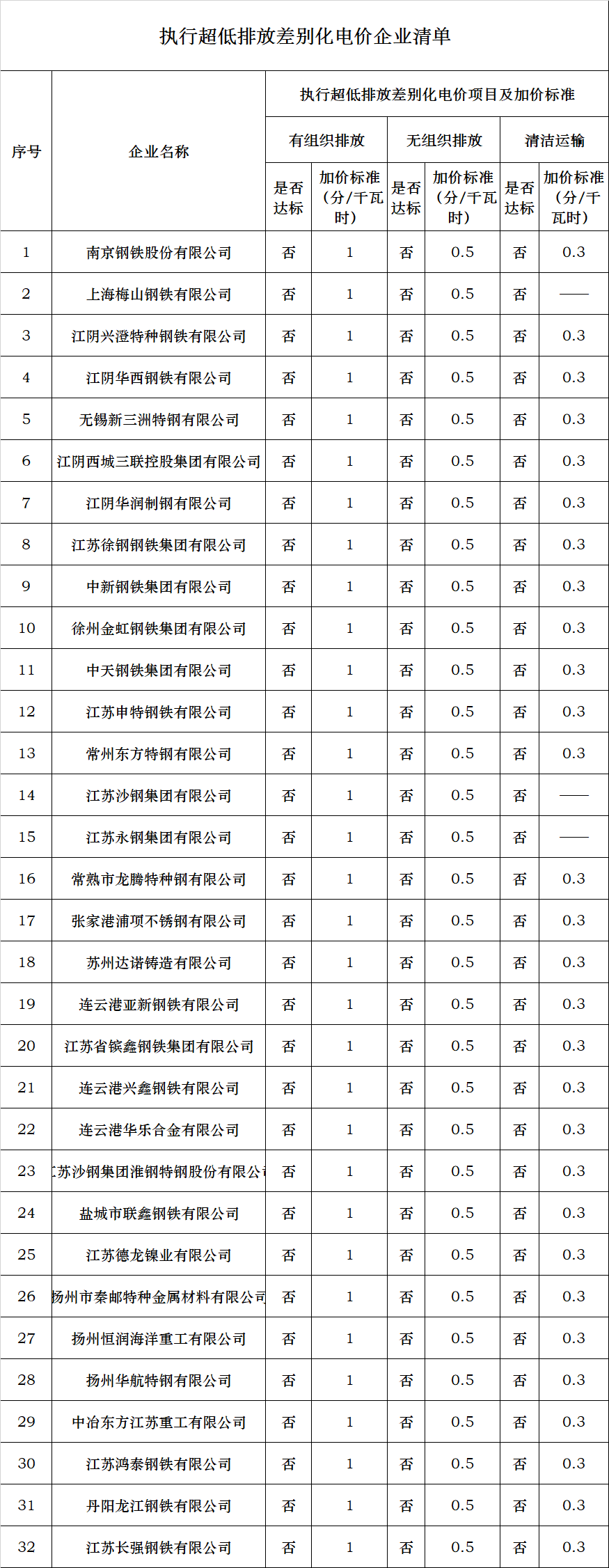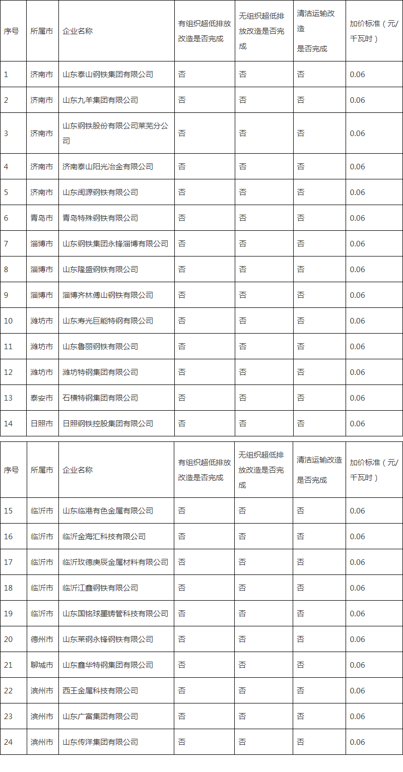 附件:執(zhí)行超低排放差別化電價鋼鐵企業(yè)名單