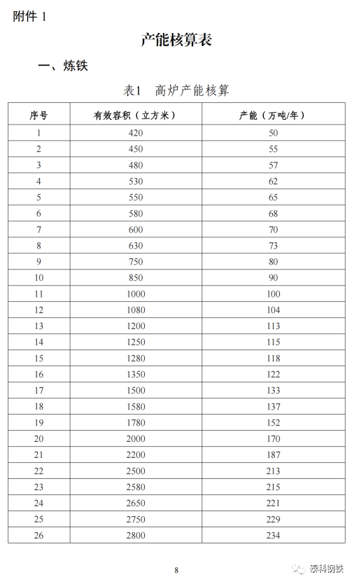 產能核定涉及退出和新建兩個方面,是推動科學置換、公平置換的重要工作。新辦法中已有明確的核定標準。對于備案清單中出現的諸多冶煉裝備僅有1個產能數據問題,按照企業能容比(能容比=總產能/總爐容)計算,即按照爐容占比分配每臺冶煉設備的產能。涉及“十三五”鋼鐵去產能任務的,需在產能總量中先行扣除已用于完成去產能任務的產能,再進行分配計算。