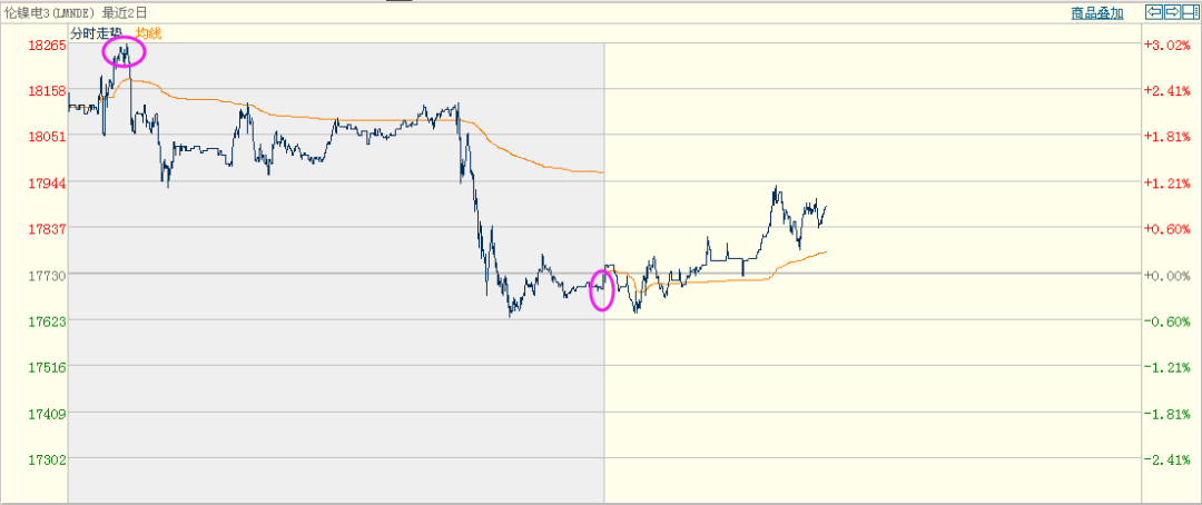 晚間整個大宗商品掉頭大跌,螺紋和鐵礦石高開低走,鐵礦石期貨盤中一度回吐了前一交易日50%左右的漲幅,有色倫銅收盤小幅下跌0.16%,而日內最大上漲高達3.2%。倫鎳收盤下跌340美元至17730美元/噸,雖然跌幅不算大,但相比日內最高點18265點來看,高位下挫了535美元。