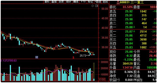 從4月30日到5月11日,三一重工出現了5連陰。另外,從春節后至今,三一重工從50.3元最低跌到了25.88元,跌幅超過50%,市值蒸發超過2200億元。