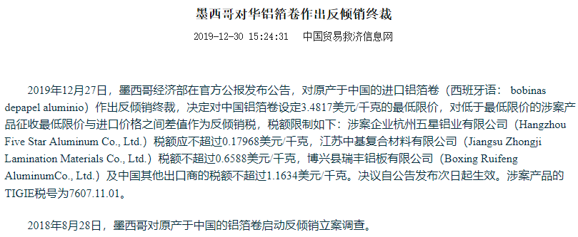 由于中國是鋁制品生產大國和出口大國,當前墨西哥做出罕見的決定,將對我國一部分企業的出口帶來影響。