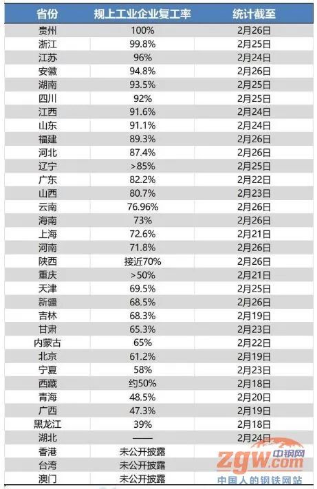 全國規(guī)模以上工業(yè)企業(yè)復(fù)工率快速增加。但值得注意的是,復(fù)工不等于進(jìn)入常規(guī)化生產(chǎn)階段,生產(chǎn)經(jīng)營的恢復(fù)仍需時(shí)間。