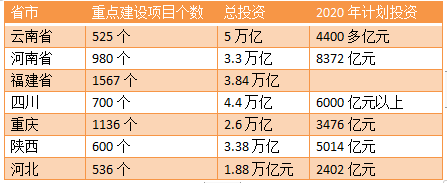 進(jìn)入3月,全國復(fù)工復(fù)產(chǎn)進(jìn)一步加快,央企平均復(fù)工率超過90%,且各省密集推出重大投資計(jì)劃,據(jù)不完全統(tǒng)計(jì),河南、云南、福建等7省已有25萬億重點(diǎn)項(xiàng)目推出,下一階段新一輪基建投資將快速上馬。