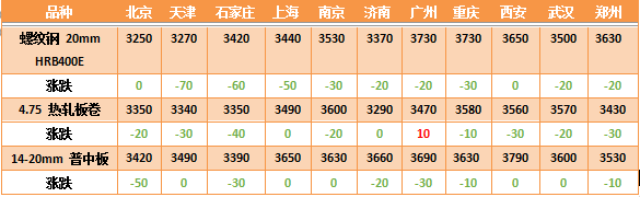 螺紋鋼全國主要市場多數(shù)下跌20-70,個(gè)別市場小幅反彈10-20,均價(jià)下調(diào)19;
