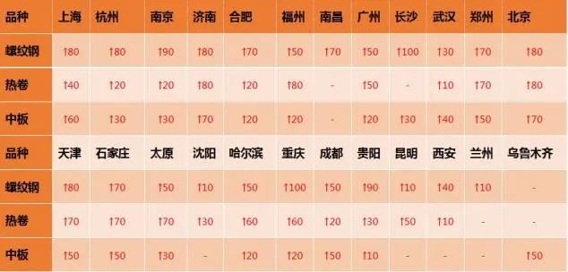 現(xiàn)貨方面,全國(guó)24個(gè)市場(chǎng)中23個(gè)市場(chǎng)上漲10-100,均價(jià)上調(diào)59;熱卷24個(gè)市場(chǎng),20個(gè)市場(chǎng)上漲10-80,均價(jià)上漲40;中板24個(gè)市場(chǎng)中20個(gè)市場(chǎng)上漲10-70,均價(jià)上調(diào)29。