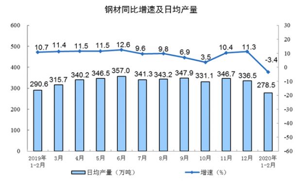 國(guó)家統(tǒng)計(jì)局?jǐn)?shù)據(jù)顯示,1-2月我國(guó)粗鋼、生鐵和鋼材產(chǎn)量分別為15470萬(wàn)噸、13234萬(wàn)噸和16713萬(wàn)噸,同比分別增長(zhǎng)3.1%、增長(zhǎng)3.1%和下降3.4%。1-2月日均產(chǎn)量分別為257.83萬(wàn)噸、220.57萬(wàn)噸和278.55萬(wàn)噸,日均環(huán)比分別下降5.2%、增長(zhǎng)2%和下降17.2%。