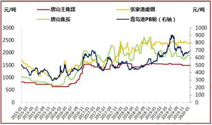 原材料現貨方面,本周鐵礦石現貨價格表現下跌,唐山焦炭下調50元/噸,張家港廢鋼較上周價格下跌110元/噸,唐山方坯下調80元/噸。