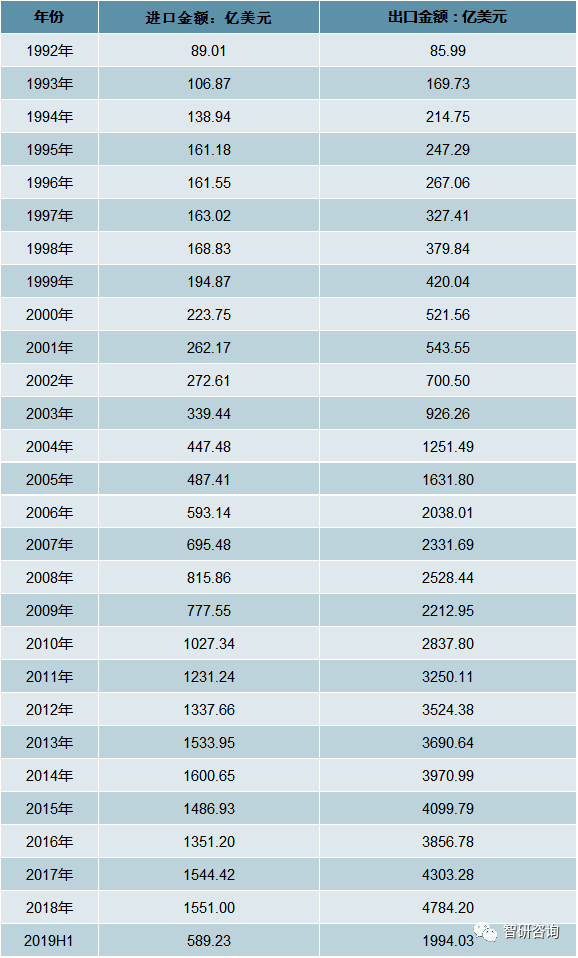 1992-2019年上半年中方口徑對(duì)美貿(mào)易情況