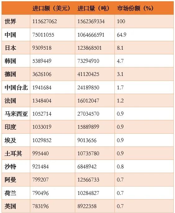 2018年世界鐵礦石進(jìn)口市場及其份額