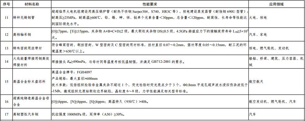 兩年的目錄對比發現,此前被列入《目錄2018版》先進鋼鐵材料的品種中,新型高性能掘進機刀具用鋼、高鐵車軸用軌道交通用鋼、高精度高溫合金管材、船用耐蝕鋼、特種無縫鋼管、特殊密封用絲帶材等7類品種沒有被列入《目錄2019版》。