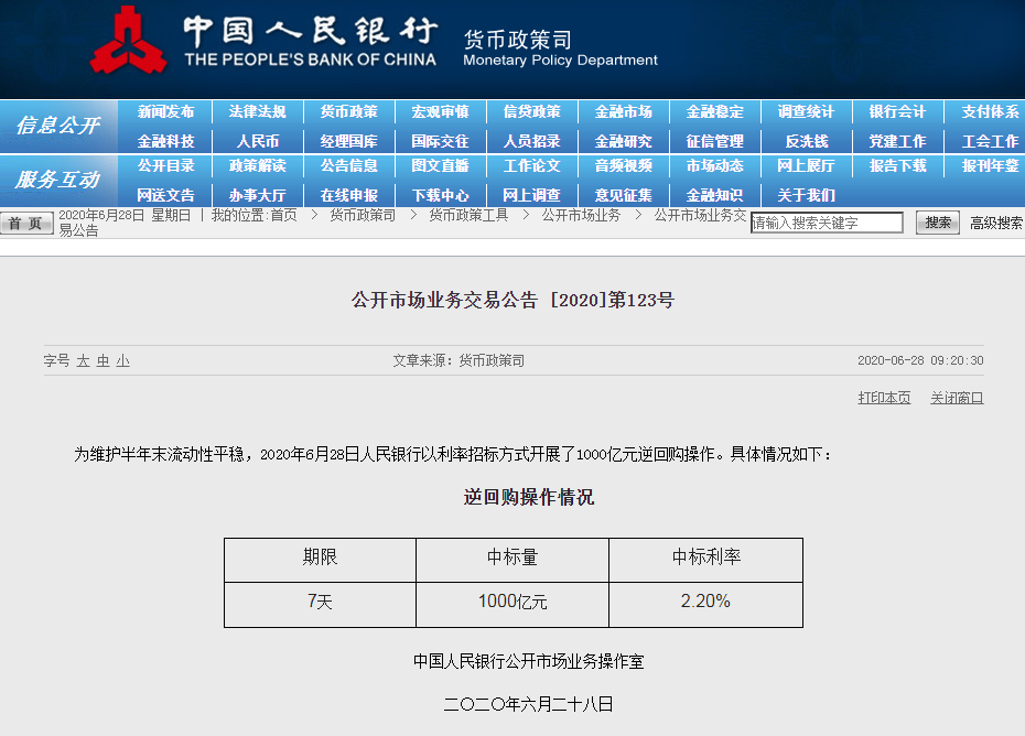 央行今日繼續開展7天1000億元逆回購操作,由于今日有1200億元逆回購到期,實現凈回籠資金200億元,而自6月22日至6月28日,央行已經累計開展6000億元逆回購操作,實現凈投放4800億元。目前資金面相對寬裕,DR001(銀行間質押式回購隔夜利率