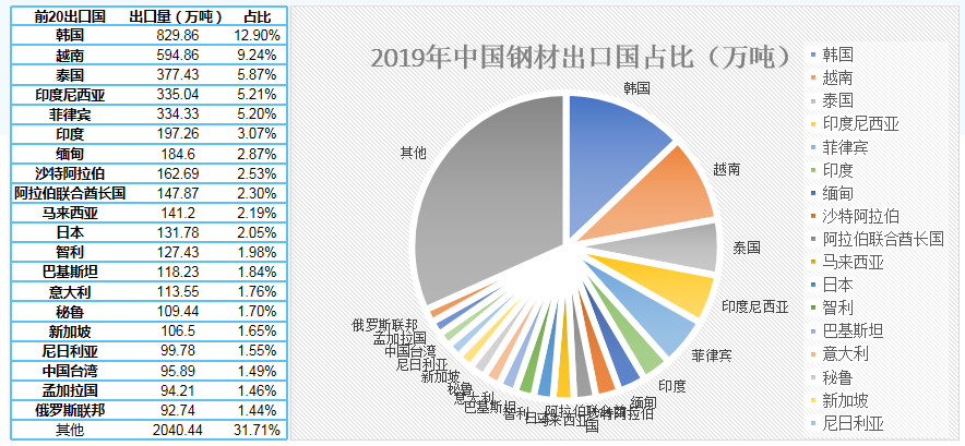 我國鋼材出口主要集中在東南亞市場,而最近東南亞鋼鐵協會秘書長在會議上表示,2020年東盟六國的鋼鐵消費量預計將下降2.1%,降至7930萬公噸。主要源自菲律賓,馬來西亞和泰國的鋼鐵消費量下降,持續關注板材出口壓力。