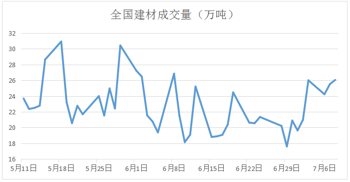 從本周建材成交來(lái)看,較上周明顯回升,日均維持在25萬(wàn)噸左右,接近5月-6月中高位水平,但從市場(chǎng)反饋來(lái)看,隨著價(jià)格的持續(xù)上漲,高價(jià)成交謹(jǐn)慎,日內(nèi)成交較前兩日已經(jīng)出現(xiàn)回落,向上空間有限。
