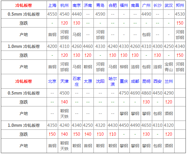 近期價格就一直處于漲勢中,是主導邯鄲地區以及關聯品種漲勢迅猛,帶動其他品種向前,現1.0主流規格的冷軋卷報價在4380-4400元/噸,處于全國相對的高位區域,需求或有所放緩。綜合考慮,預計短期冷軋卷板價格盤整觀望。