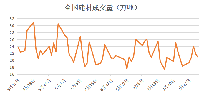 隨著南方降雨減少,需求恢復預期支撐下,市場成交有所好轉,全國建材成交回升至20萬噸之上,但現實的庫存壓力仍在,短期需求難有大幅突破,成交仍有反復的可能。